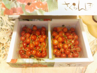 基本的に果物が大好きなわたくし。 中でも目がないのがこれ、さくらんぼ! もうね、1食全部さくらんぼでもいいって思えるくらい好き! ほんとお腹壊すくらい食べてみたいものです。 スイカは半玉食べてお腹壊したことがある、…何度か。 でも高いんだよねぇ、さくらんぼ。 まぁこんだけきれいでおいしい食べ物だからしょうがないか。 キラキラして見てるだけでも目の保養。 小さいものが集まってるのって見るのあんまり好きじゃないけれど、さくらんぼは部屋中が埋め尽くされるくらいあってもいなぁ。 毎年パパが御贔屓にしている山形の農園から直送で送ってくれるのです。 あと秋にはラ・フランスと♥ 洋梨も大好物!! 和梨も好きです、幸水とか晩三吉とか。 フルーツのバイキングとかあったらいいのになぁ。 缶詰じゃなくてフレッシュフルーツの。 毎週通うかもしれない。 |
